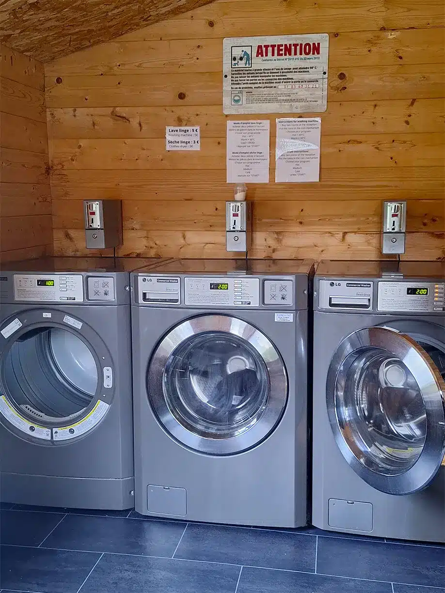 Nous mettons à votre disposition une laverie avec deux lave-linge et un sèche-linge, ouvert tous les jours 24/24.